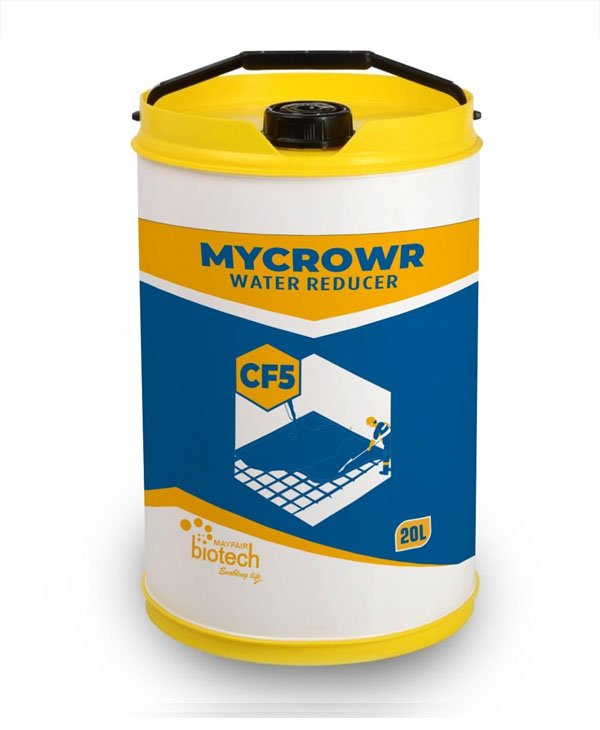 MYCROWR – CF5 is a chlorine-free water lowering admixture based on specific sugar reduced lignosulphates. It comes in a dark brown solution that dissolves in water right away. It improves the fluidity of the concrete and helps the water content of the mixture work more efficiently by dispersing the fine particles. As a result, advantages like water reduction and enhanced strengths can be realized. This also results in higher levels of workability for the same water content.
