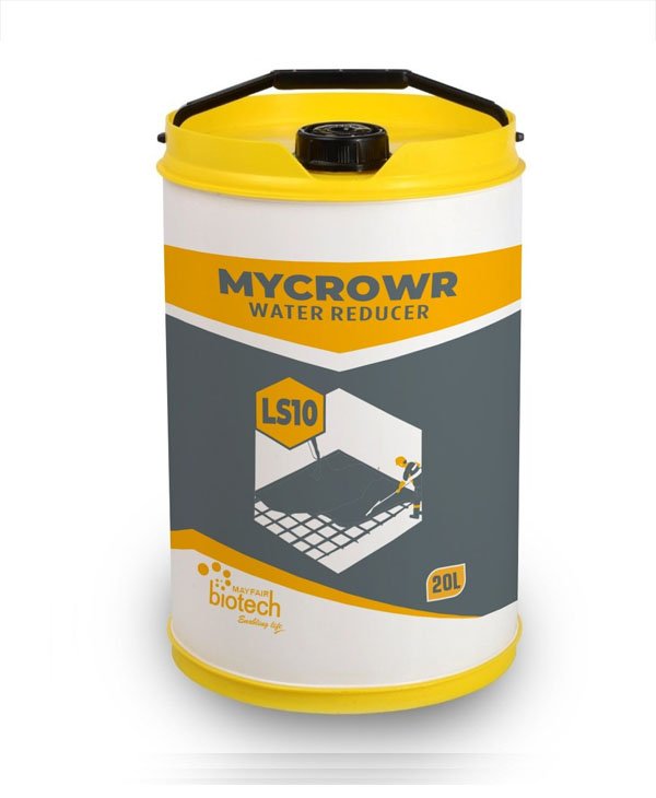 MYCROWR – LS10 is a chlorine-free water lowering admixture based on specific sugar reduced lignosulphates. It comes in a dark brown solution that dissolves in water right away. It improves the fluidity of the concrete and helps the water content of the mixture work more efficiently by dispersing the fine particles. As a result, advantages like water reduction and enhanced strengths can be realized. This also results in higher levels of workability for the same water content.