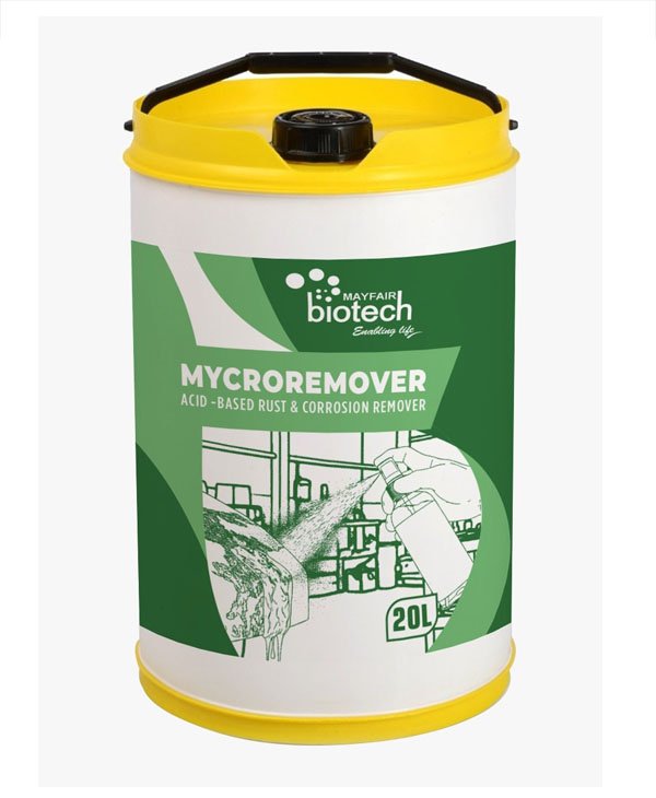 MYCROREMOVER is a combination of acid-based material, corrosion inhibitors, dispersing agents and is supplied as a clear green solution.
