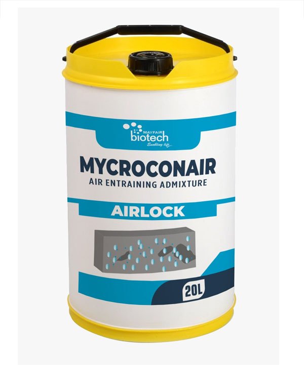 MYCROCON – AIR is a chloride free air entraining admixture based on neutralized Vinson resin. Micro-con AIR acts at the interface between the mixing water and cement/aggregate particles to produce microscopic air bubbles, which are evenly distributed throughout the concrete. The entrained air enhances durability by providing protection. Against the rapid temperature changes found in freezing and thawing conditions and with the use of de-icing salts.