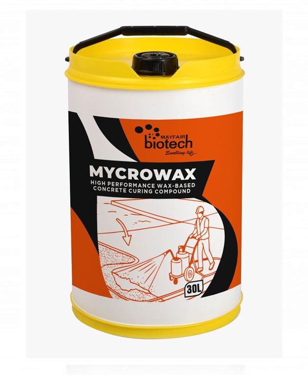 MYCROWAX is a high-efficiency wax-based concrete curing compound formulated to protect freshly placed concrete by forming a continuous moisture-retaining membrane on the surface. The product is based on refined paraffin and microcrystalline wax emulsion technology, designed to significantly reduce water evaporation during the early curing period. By maintaining adequate moisture in the concrete, MYCROWAX promotes proper cement hydration, leading to improved strength development, surface hardness, and durability while minimizing shrinkage cracks. The product is specially designed for large concrete areas where conventional water curing is difficult or impractical, making it ideal for infrastructure and industrial construction.